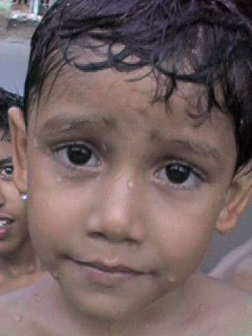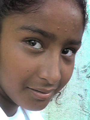 Young girl mothers her pox striken brother without complaint. Other household members are seen around her.
